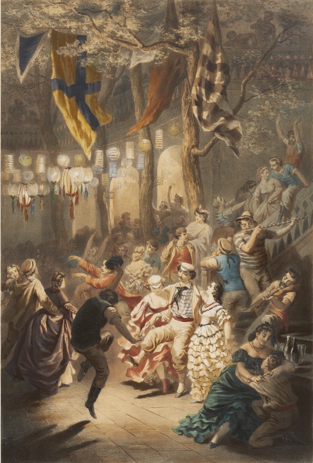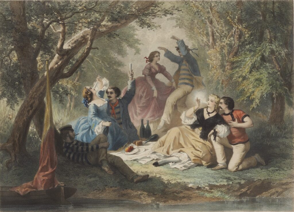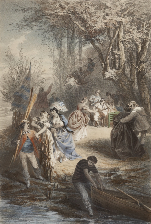 On connaît de lui des scènes de genre autour du canotage ou des bals célèbres sous le Second Empire. Les lithographies conservées au musée Fournaise illustrent la jeunesse dorée dans les hauts lieux du canotage sur les bords de Seine ou de la Marne. Les jeunes femmes portent d’amples crinolines. Les hommes revêtent des pantalons et des tee-shirts qui ne sont pas sans évoquer le goût certain pour l’anglomanie dans l’air du temps.